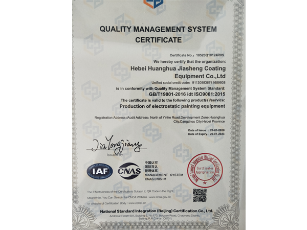 質量管理體系認證證書